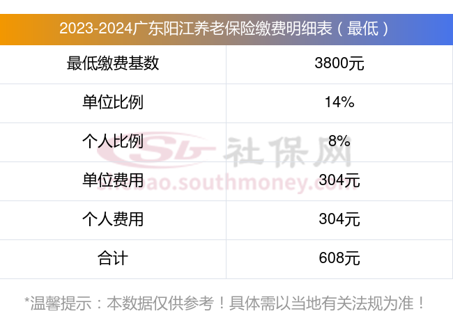 据新社通app获悉,养老保险是为居民退休后的经济来源提供保证的保险,对于单位职工而言,由用人单位和职工本人共同缴纳养老保险,保费较高;而居民的养老保险保费是由居民个人承担。不管是职工养老保险还是居民养老保险,保费都需要通过养老保险缴费基数计算得出。下面随新社通app小编一起来看看广东阳江养老金缴费标准2023-2024最新基数比例是多少!