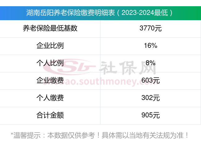 湖南岳阳养老保险缴费基数2023-2024年最新标准(最低)一个月要交多少钱?举例说明