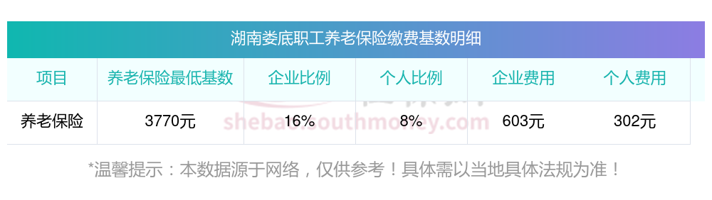 湖南娄底养老保险缴费基数2023-2024最新标准如下