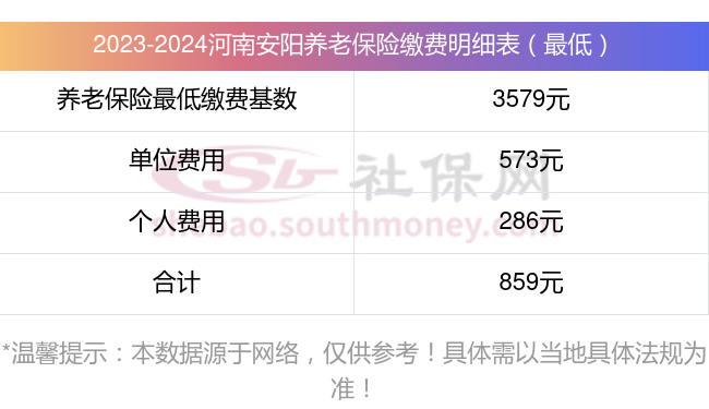 河南安阳养老保险缴费基数2023-2024年最新标准(最低)