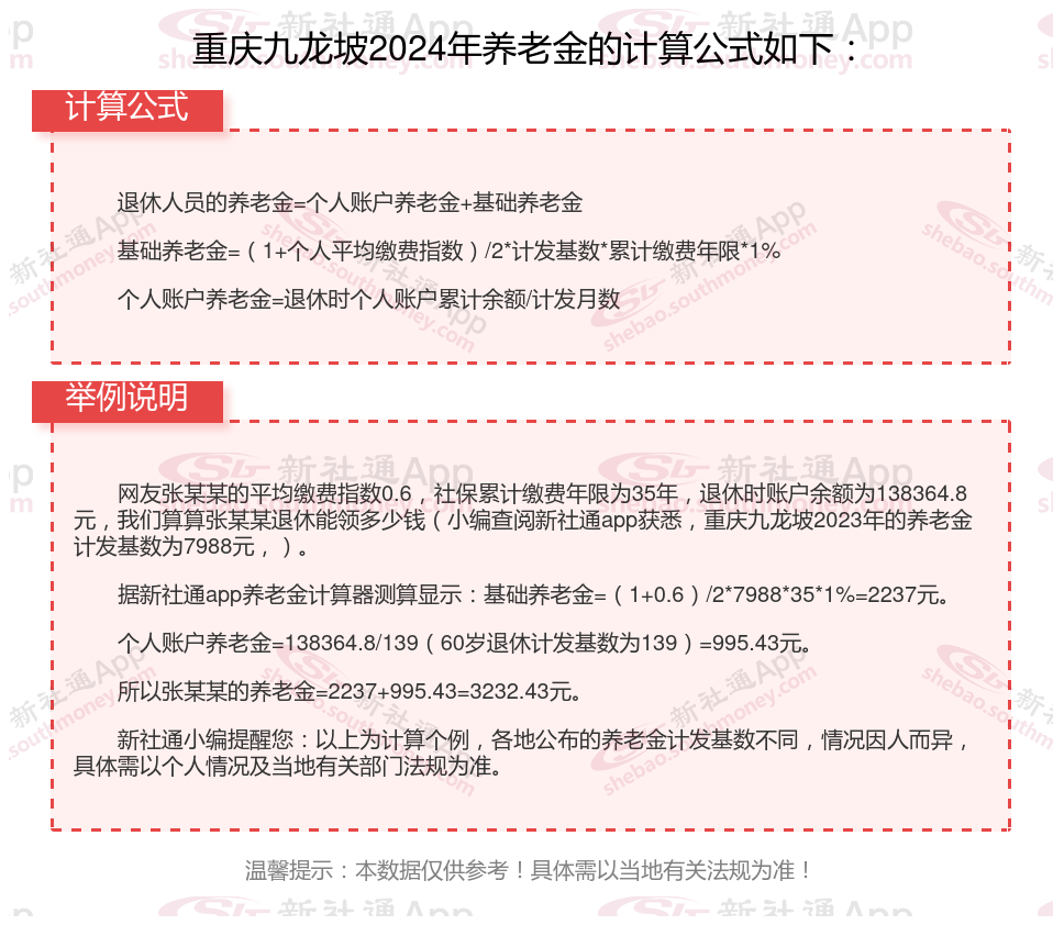 重庆九龙坡养老金计算公式2024年最新计算器 社保交满15年能领多少钱?