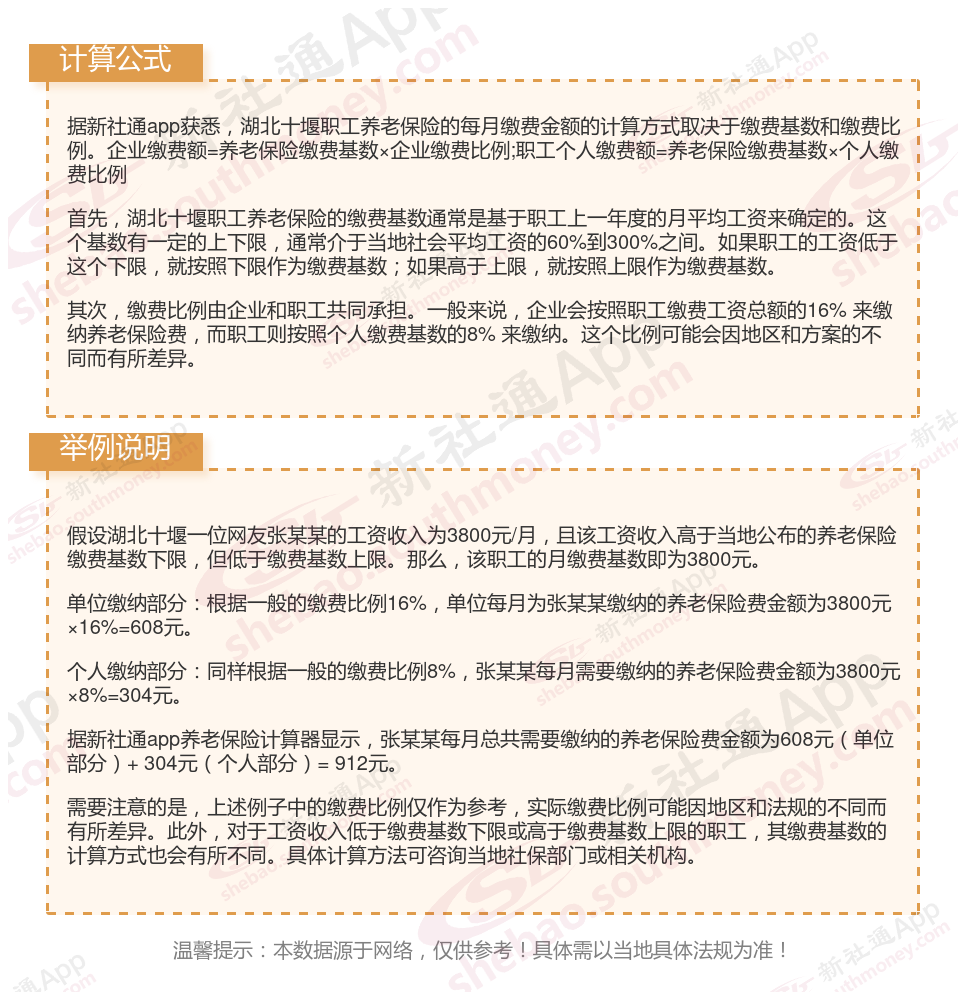 据新社通app显示,湖北十堰养老保险缴费基数2023-2024年最新标准如下:
