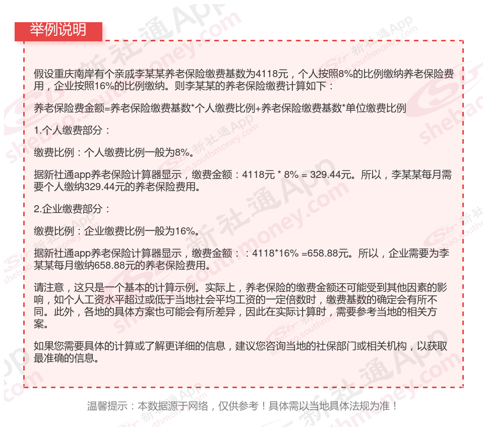 重庆南岸养老保险缴费基数2023-2024年最新标准(最低)要交多少钱一个月?