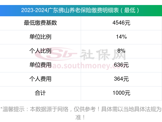 广东佛山养老保险缴费基数2023-2024年最新标准(最低)一个月要交多少钱?举例说明