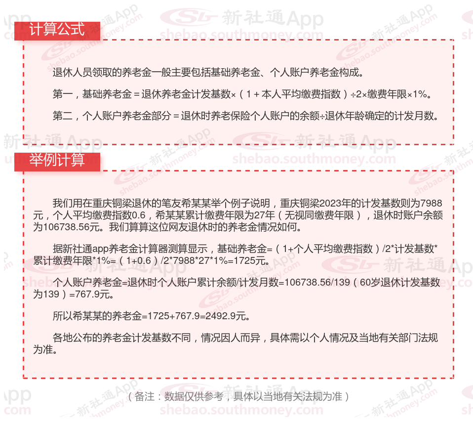 重庆铜梁养老金计算公式2024年最新计算器 社保交满15年能领多少钱?