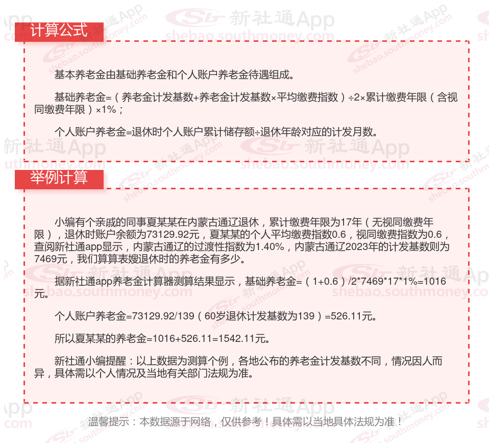 内蒙古通辽养老金计算公式2024年计算方法(在线计算器)