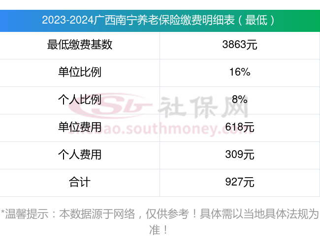 广西南宁养老保险缴费基数2023-2024最新标准,一个月要交多少钱?