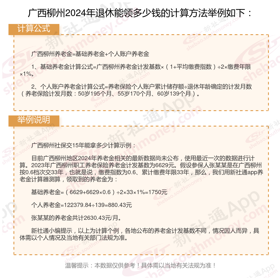 广西柳州社保交满15年能领多少钱?(在线计算举例说明)