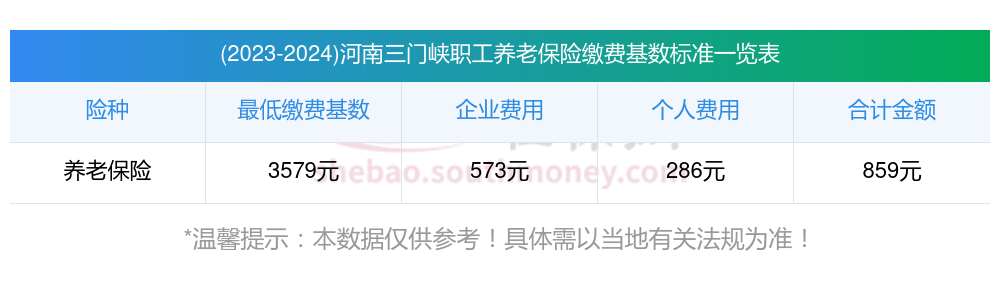 河南三门峡养老保险缴费基数2023-2024最新标准如下