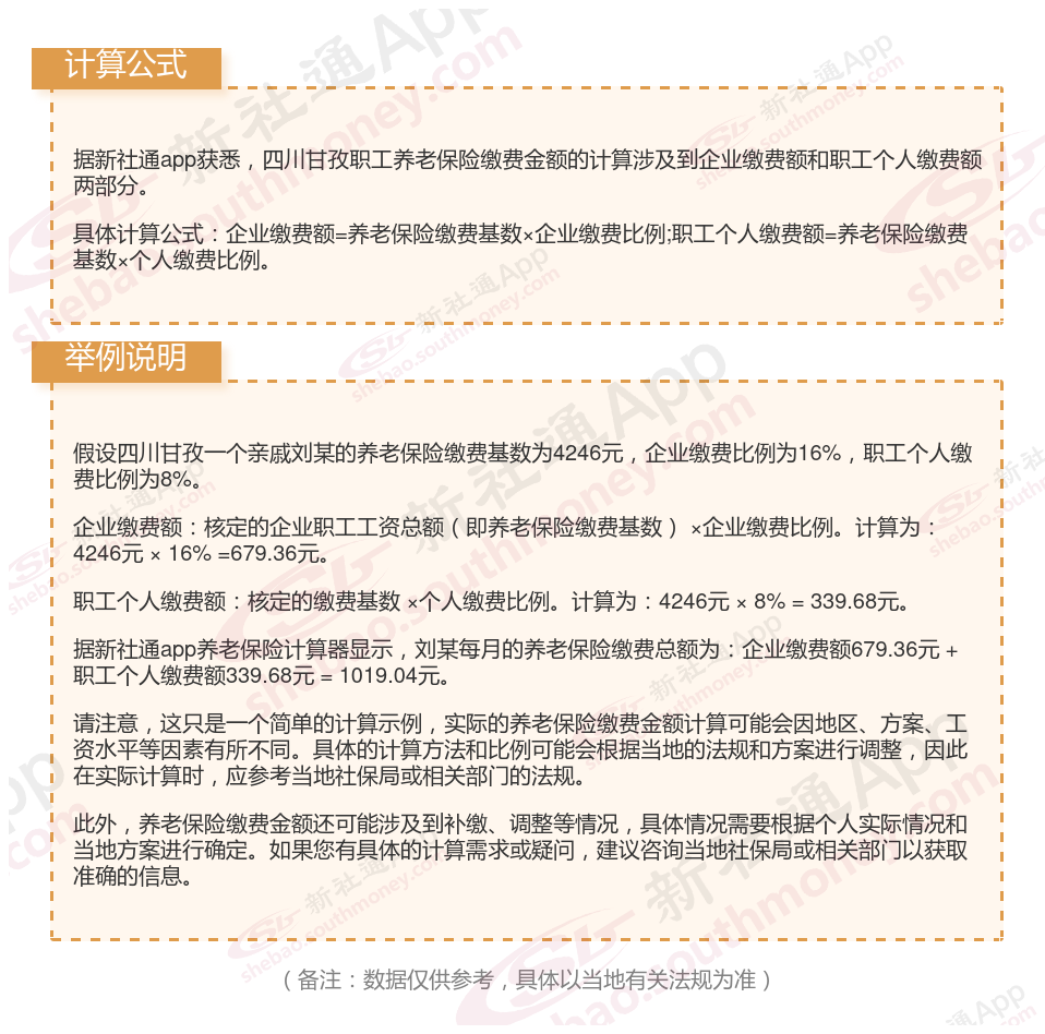 据新社通app显示,四川甘孜职工养老保险最低缴费基数为:4246元;单位和个人的缴费比例分别为:16%、8%;