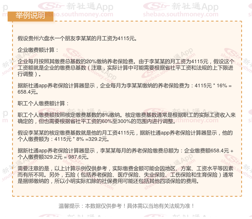 贵州六盘水养老金计算公式2024年计算方法(在线计算器)