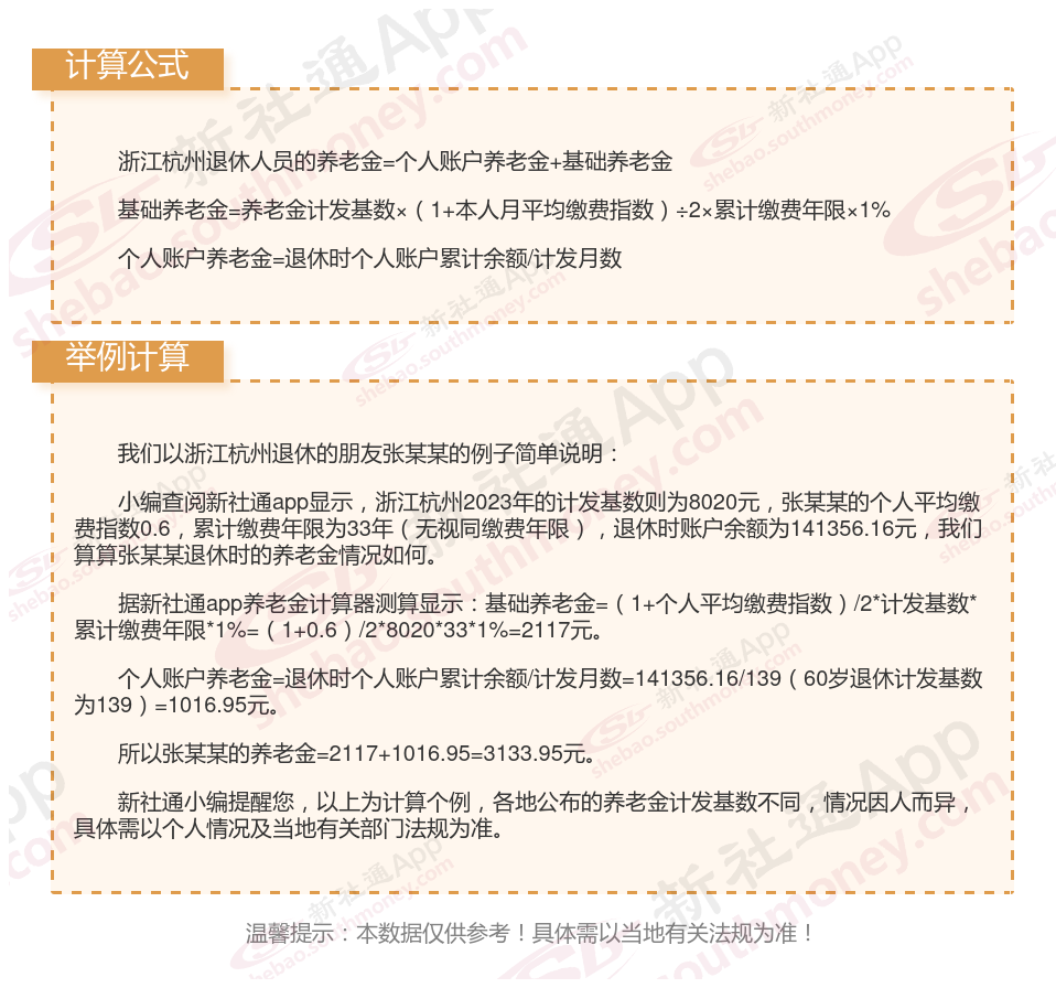 浙江杭州养老金计算公式2024年计算方法(在线计算器)