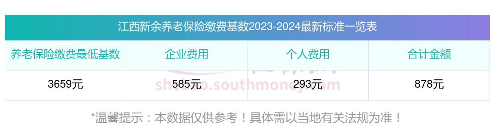 养老保险一个月要交多少钱?江西新余缴费基数2023-2024年最新标准(最低)