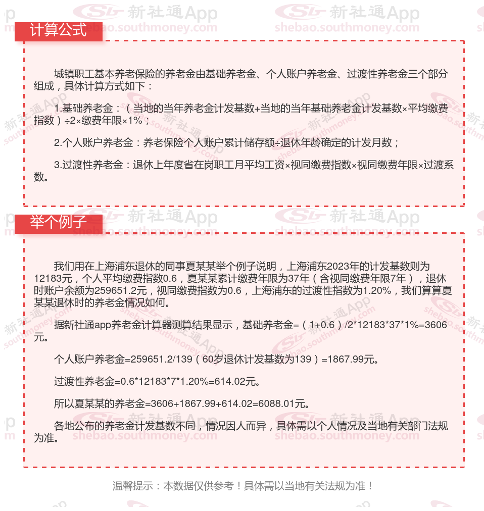 上海浦东养老金计算公式2024年计算方法(在线计算器)