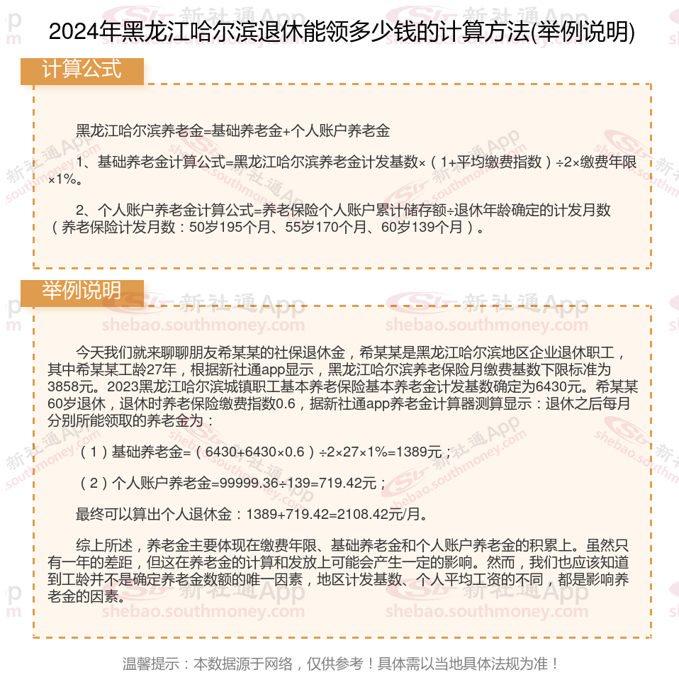 黑龙江哈尔滨养老金计算公式2024年计算方法(在线计算器)