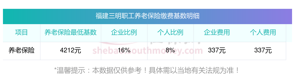 福建三明养老保险缴费基数2023-2024年最新标准(最低)一个月要交多少钱?举例说明