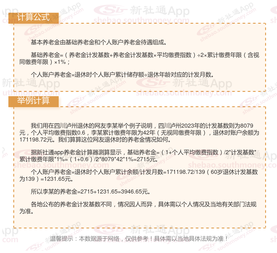 四川泸州养老金计算公式2024年计算方法(在线计算器)