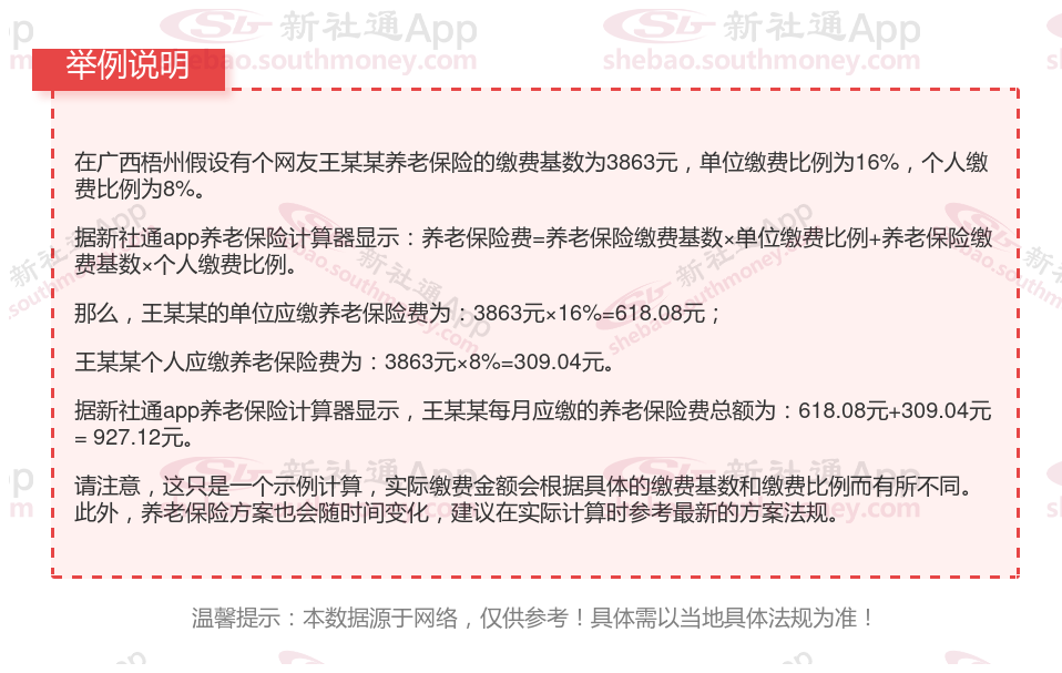 据新社通app显示,2023-2024年广西梧州职工养老保险的缴费标准是根据缴费基数来确定的: