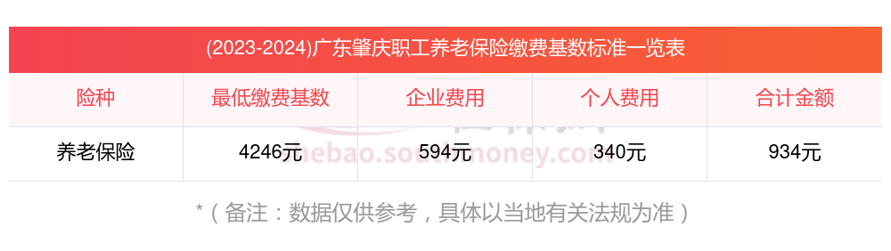 广东肇庆养老保险缴费基数2023-2024最新标准
