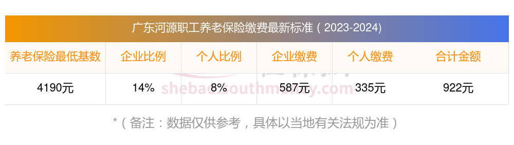 2023-2024年广东河源养老保险缴费比例及基数标准(最新)