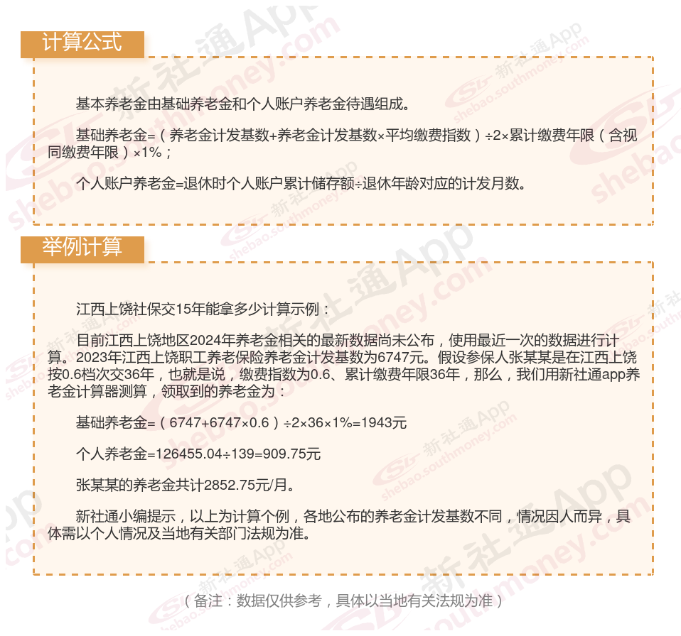 江西上饶养老保险交满15年能领多少钱?(在线计算举例说明)