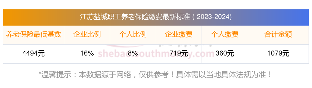 江苏盐城缴费基数2023-2024年最新标准(最低)一个月要交多少钱?