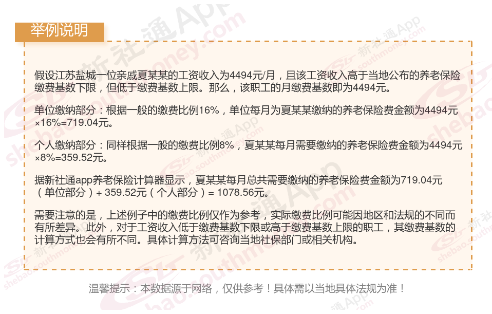 据新社通app获悉,养老保险是与参保人退休后的待遇相关的,只有达到了一定的缴费水平,退休后才能享受较好的待遇水平,也就是说缴费水平过低的话,那么未来能够享受的养老金水平也会比较低。而养老保险保费需要根据缴费基数确定。下面随新社通app小编一起来看看,江苏盐城养老保险缴费标准2024年是多少?附养老金计算公式(在线计算器)。