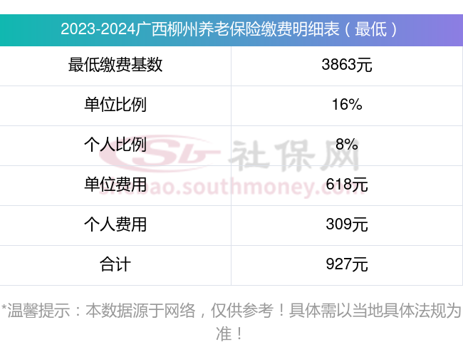 据新社通app显示,广西柳州养老保险缴费基数2023-2024年最新标准如下: