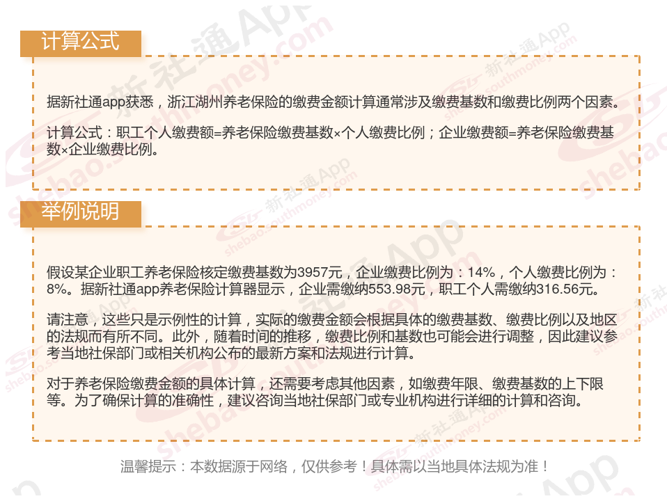 浙江湖州养老保险缴费基数2023-2024年最新标准(最低)要交多少钱一个月?