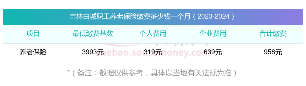 假设吉林白城某职工的养老保险缴费基数为3993.2元,吉林白城法规的养老保险缴费比例为:企业缴纳比例为16%,个人缴纳比例为8%。