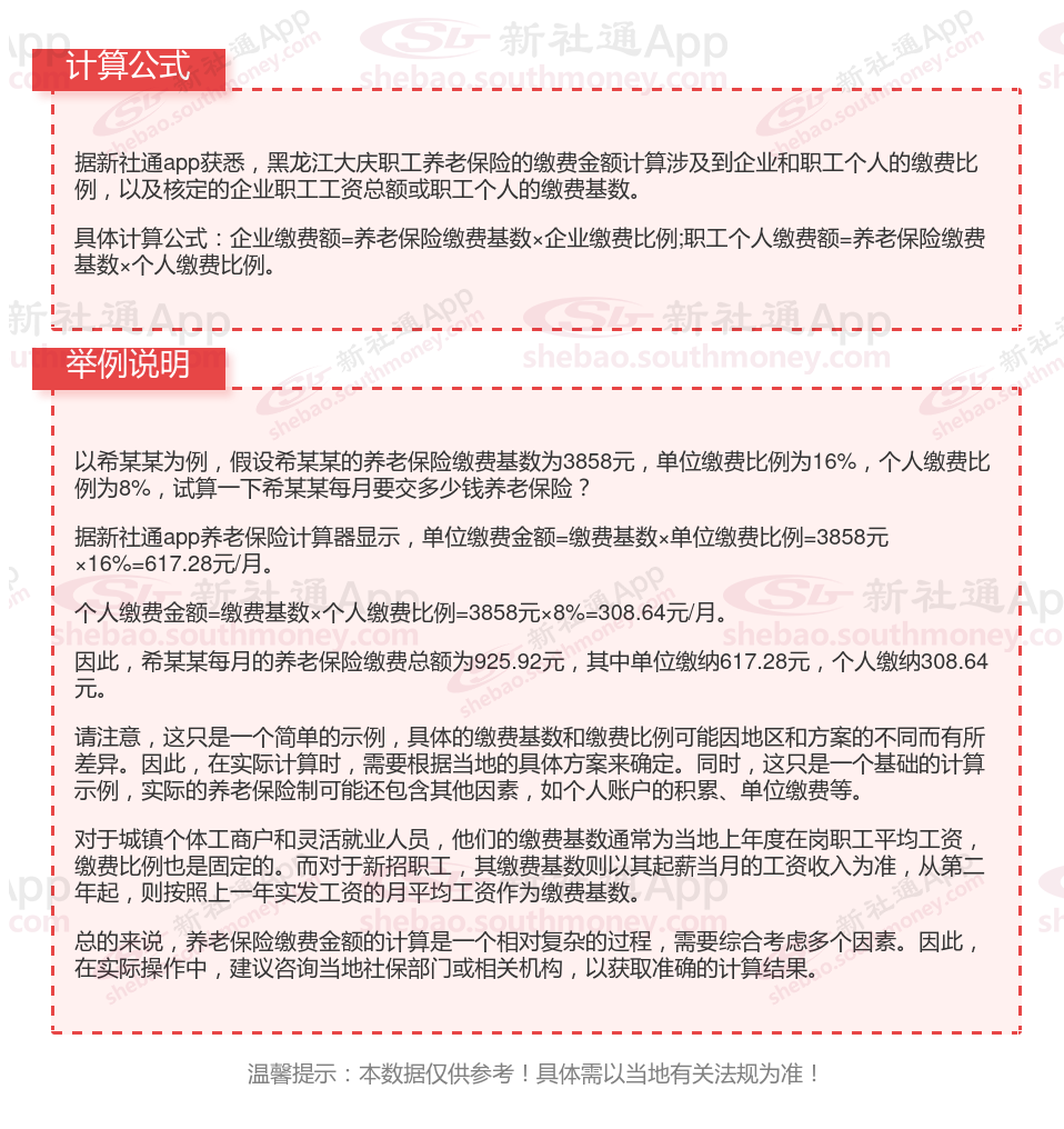 黑龙江大庆养老金计算公式2024年计算方法(在线计算器)