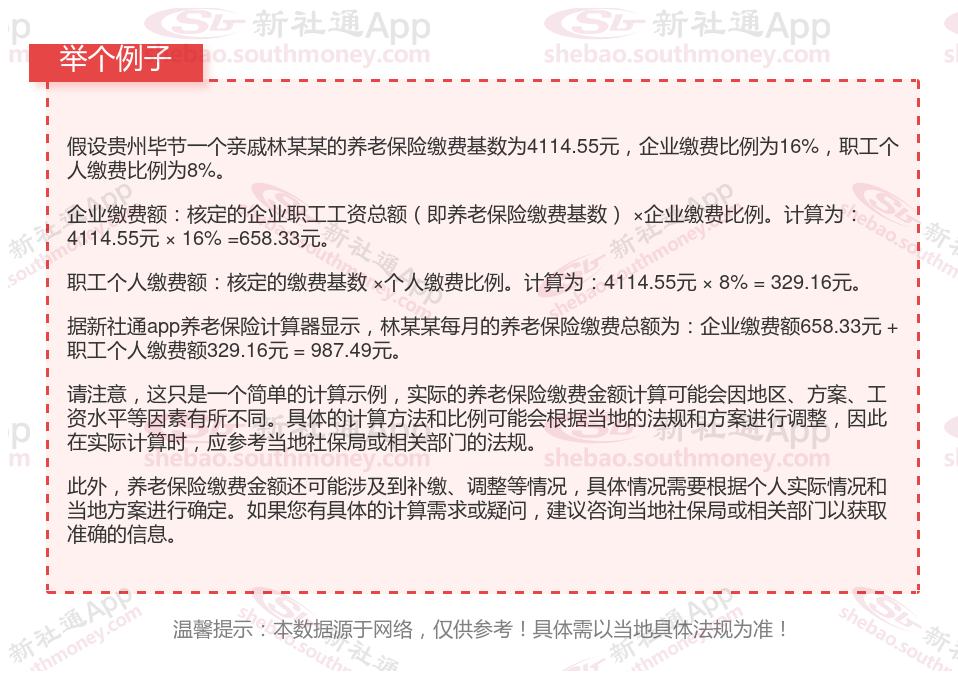 养老保险一个月要交多少钱?贵州毕节缴费基数2023-2024年最新标准(最低)