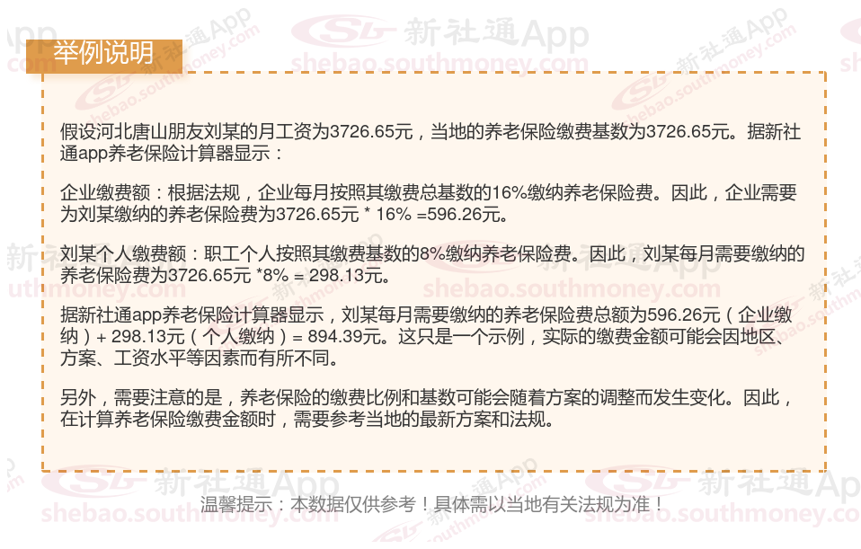 据新社通app显示,河北唐山职工养老保险缴费基数2023-2024年最新标准如下: