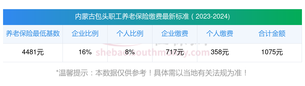 内蒙古包头养老保险缴费基数2023-2024年最新标准(最低)一个月要交多少钱?举例说明