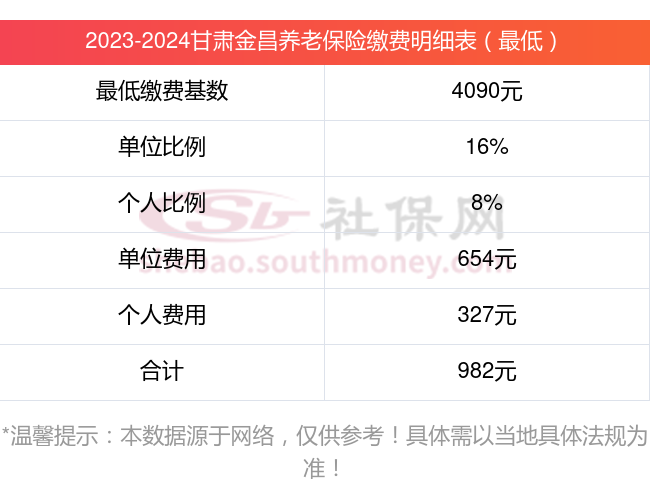 甘肃金昌养老保险缴费标准2023-2024最新消息