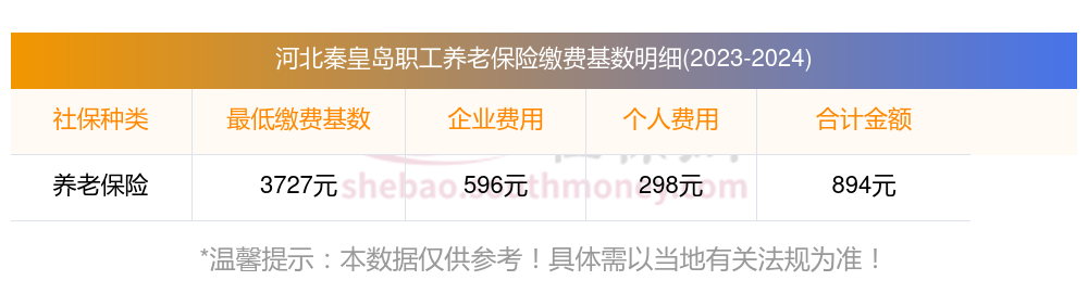 河北秦皇岛养老保险缴费基数2023-2024最新标准 一个月要交多少钱?