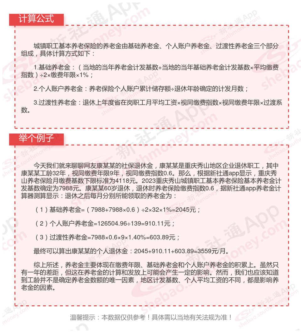 重庆秀山养老金计算公式2024年计算方法(在线计算器)