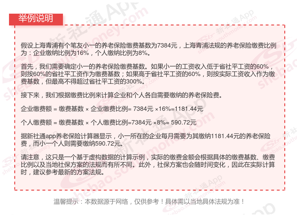 上海青浦养老保险缴费基数2023-2024年最新标准(最低)要交多少钱一个月?