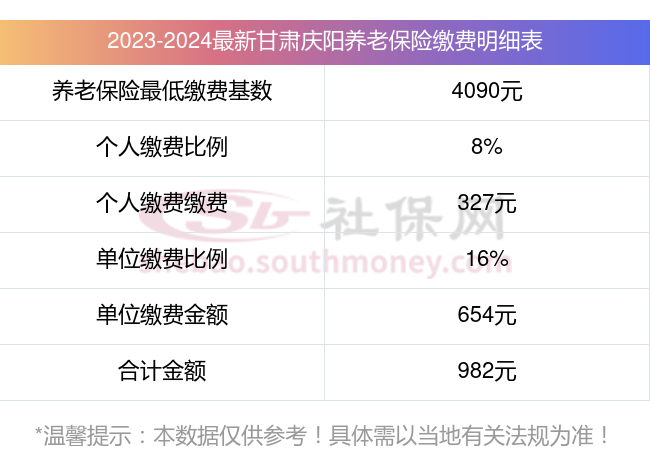 甘肃庆阳养老保险缴费标准2023-2024最新消息