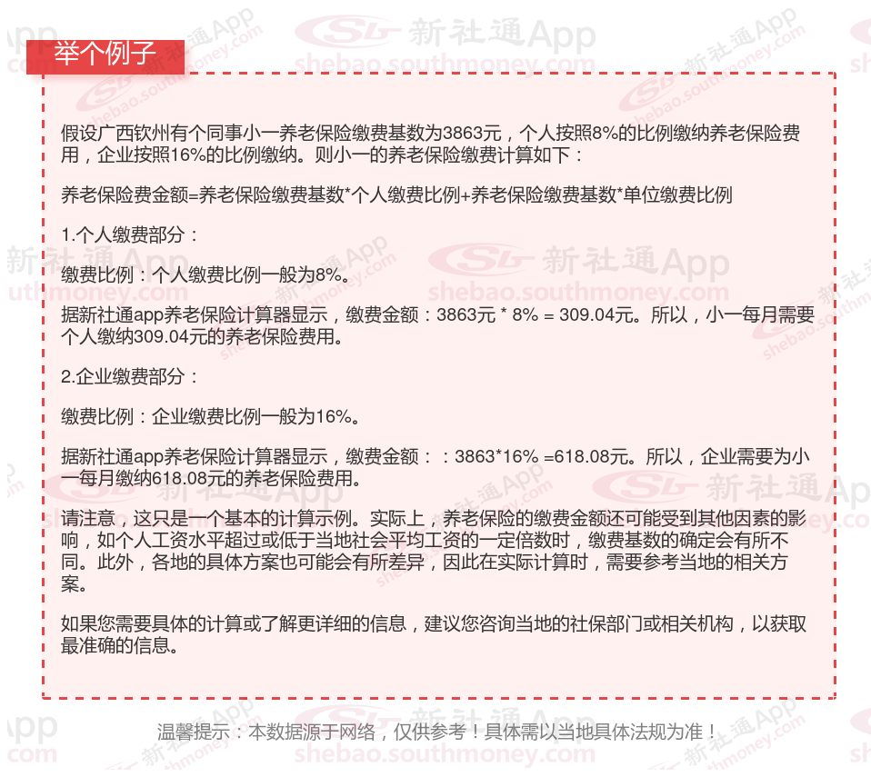 广西钦州养老保险缴费基数2023-2024年最新标准(最低)要交多少钱一个月?