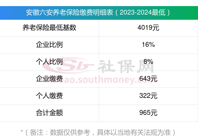安徽六安养老保险缴费基数2023-2024年最新标准(最低)