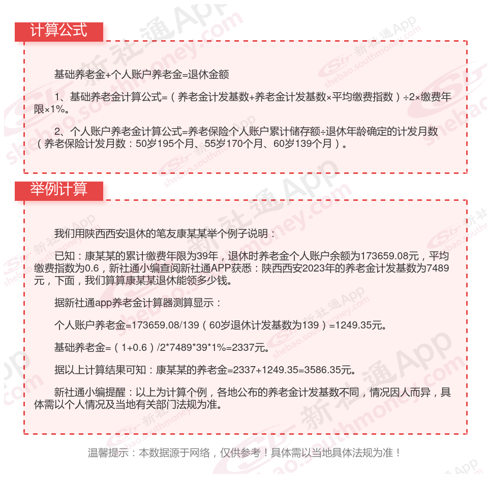 据新社通app获悉,陕西西安养老保险缴费金额的计算通常基于缴费基数和缴费比例。以下是一个具体的计算举例: