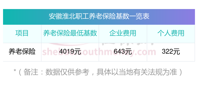假设安徽淮北某职工的养老保险缴费基数为4019元,安徽淮北法规的养老保险缴费比例为:企业缴纳比例为16%,个人缴纳比例为8%。