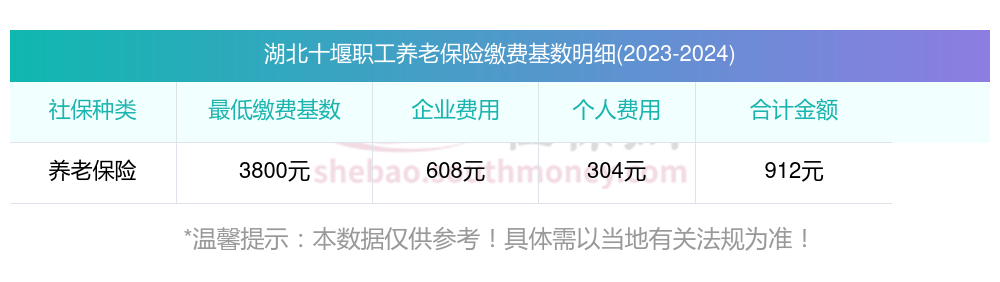 假设湖北十堰某职工的养老保险缴费基数为3800元,湖北十堰法规的养老保险缴费比例为:企业缴纳比例为16%,个人缴纳比例为8%。