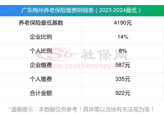 据新社通app显示,广东梅州养老保险缴费基数2023-2024年最新标准如下: