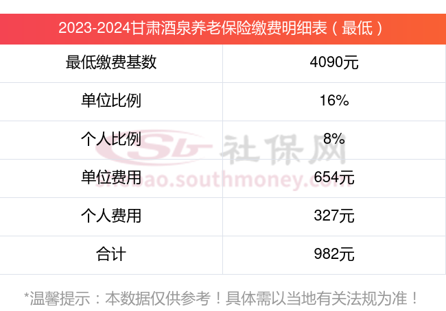 甘肃酒泉养老保险缴费基数2023-2024年最新标准(最低)
