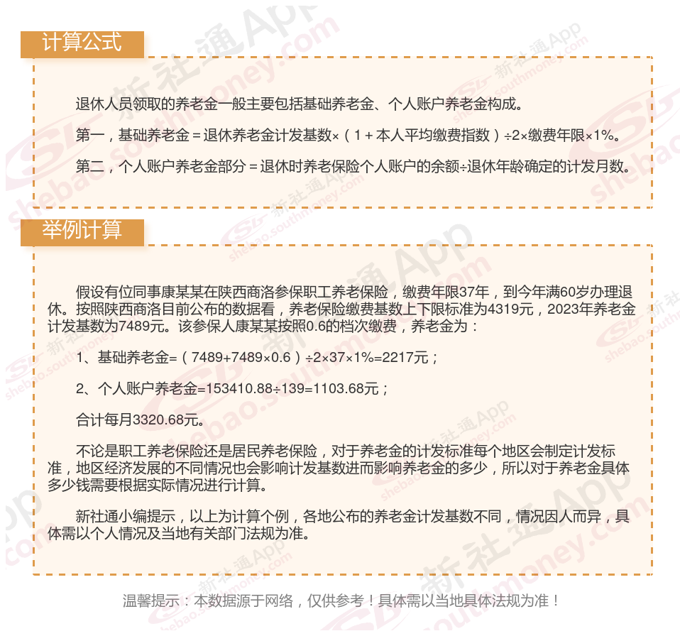 陕西商洛养老金计算公式2024年计算方法(在线计算器)