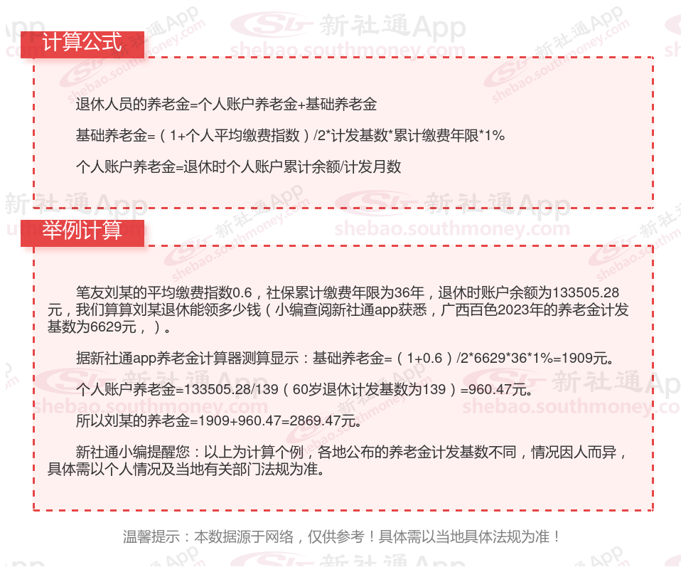 广西百色养老金计算公式2024年计算方法(在线计算器)