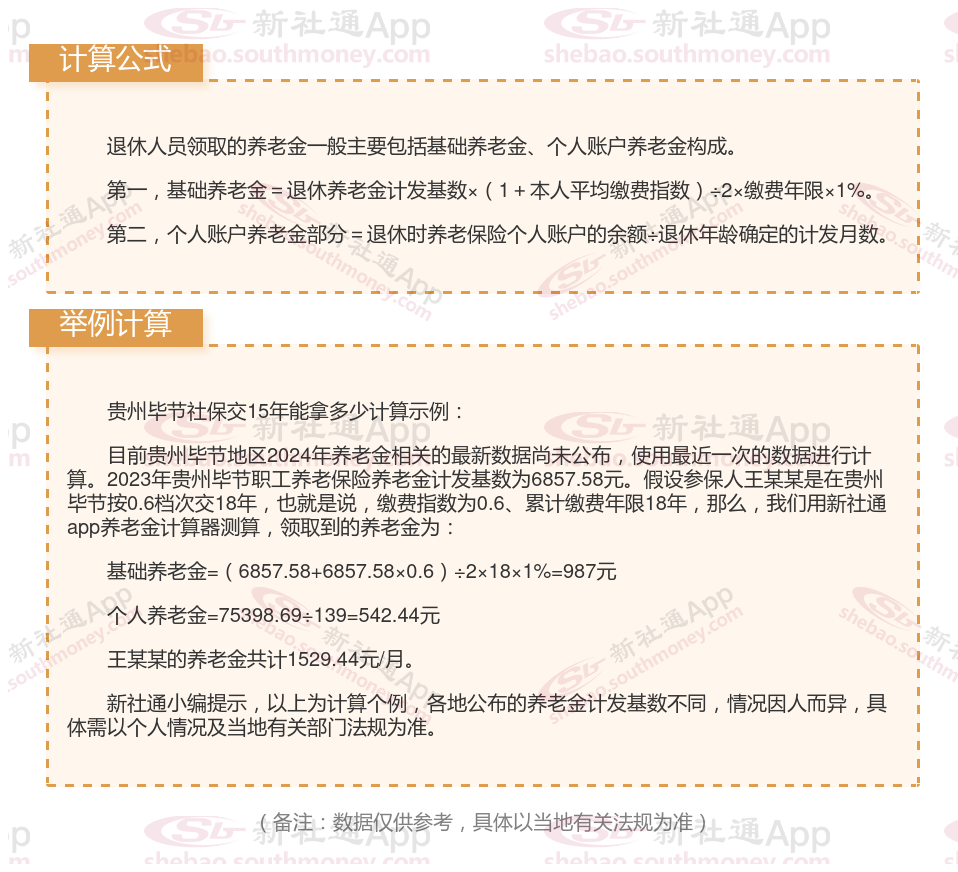 贵州毕节社保养老保险交满15年能领多少钱?(在线计算举例说明)