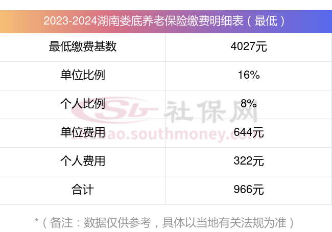 湖南娄底养老保险缴费基数2023-2024最新标准如下